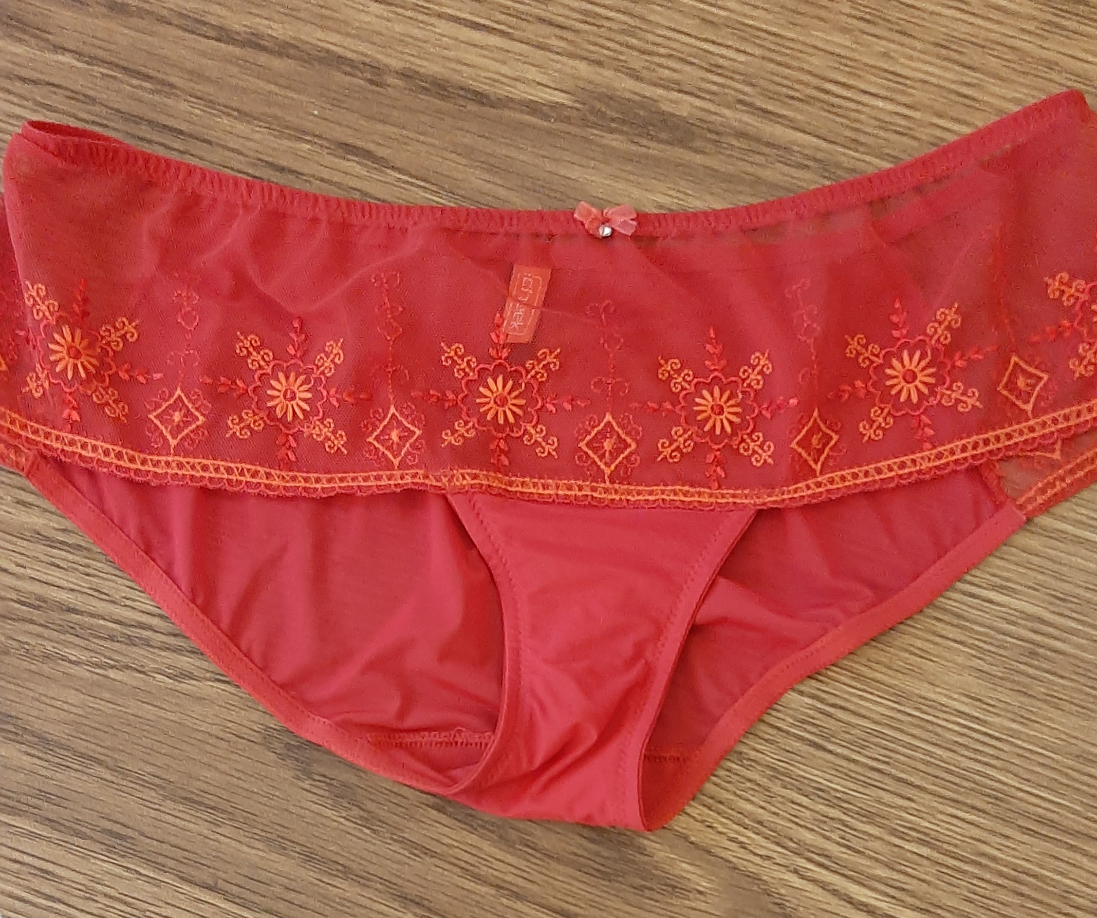 Eleganter sexy Slip in Rot mit feinem Blumenmotiv, angenehm zu tragen. Vorne mit einer süßen Schleife +Glitzer Stein verziert.